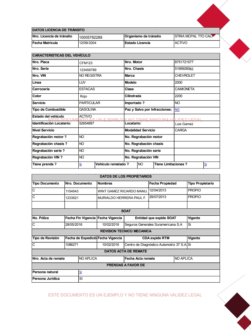 En el documento, verás que aparece la identificación del dueño actual del carro, pero para conseguirlo necesitarás más datos, como el número de placa, la identificación del solicitante, su correo electrónico y número de teléfono.